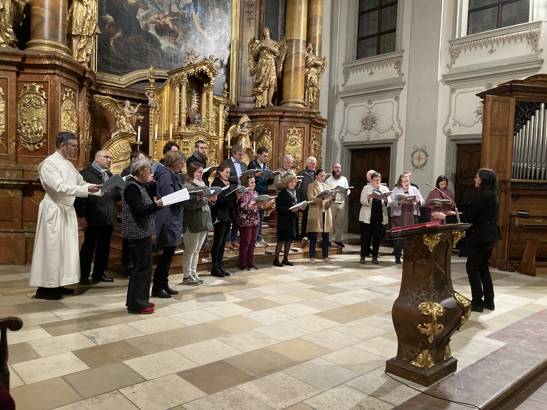 Der Chor des Konservatoriums für Kirchenmusik sang unter Leitung von Direktor Ewald Donhoffer sowie unter der Leitung der Studierenden Elena Ruml, Stanka Balogova, Jaqueline Clemens, Ferdinand Stegfellner, Inge Fernando und Sabine Settele.