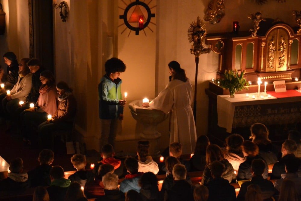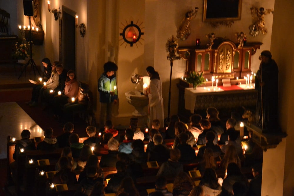 Alle Mitfeierenden versammelten sich zu Beginn im Sängerpark beim Osterfeuer am Reichramingbach, von wo auch das „Wasser“ mit in die Kirche genommen wurde. Nach der Segnung des Osterfeuers und der 1. Lesung zogen die Gläubigen mit einem Trommler singend zur Kirche hinauf, um dort weiter zu feiern.